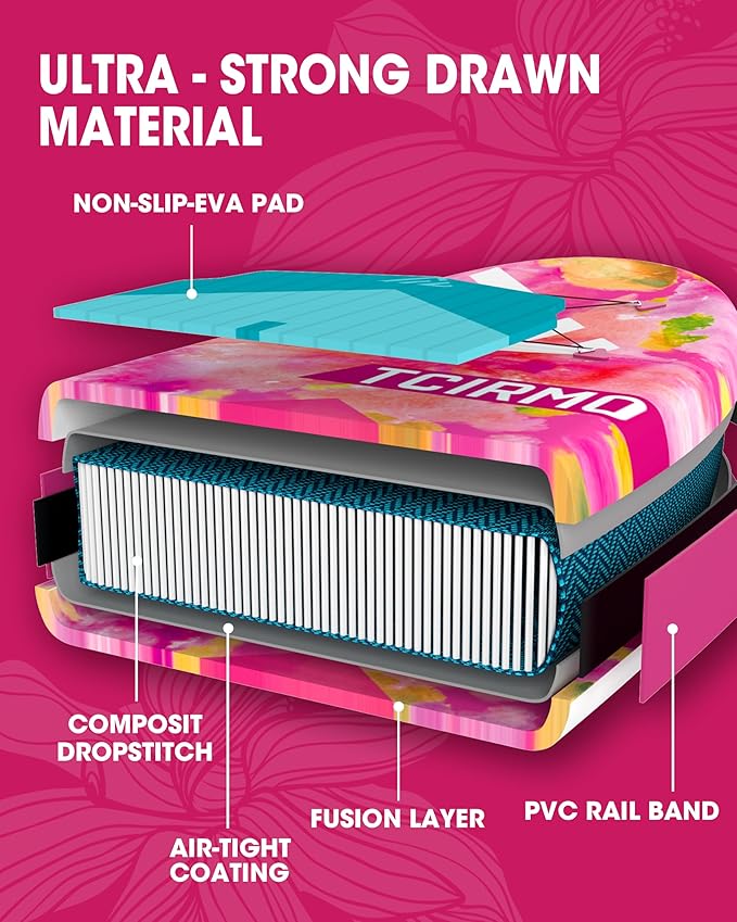 • 【WELDED RAIL TECHNOLOGY】: The Heat-Welded Rail Technology creates a completely airtight, mechanically bonded seam without the risk of glue weakening over time. This makes inflatable paddle board stronger and longer lasting.