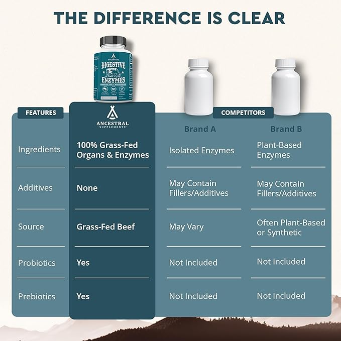 Ancestral Supplements Digestive Enzymes for Women & Men, 90 Capsules, with Probiotics and Grass Fed Beef Organs, Supports Gut Health, Digestive Health & Nutrient Absorption, Allergen Free, Non GMO