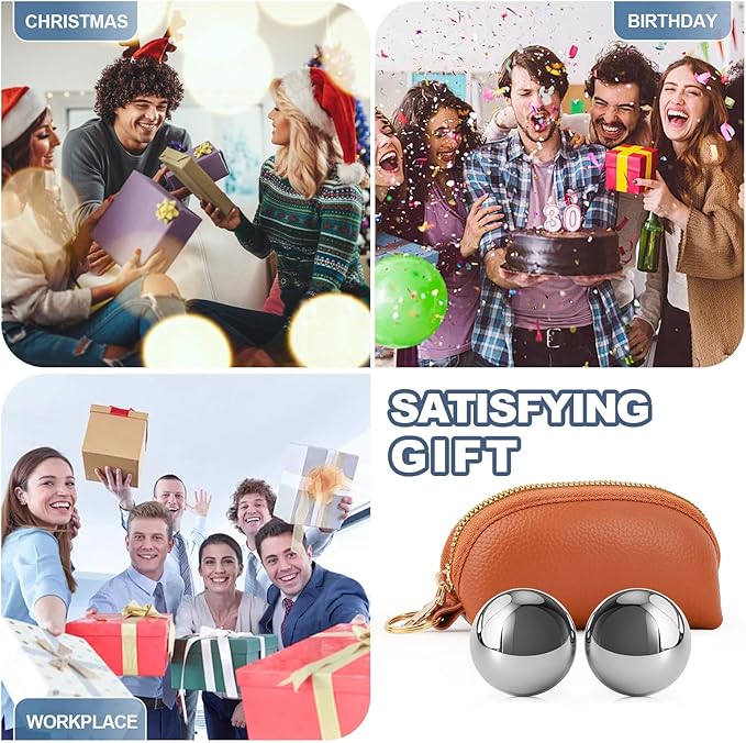 • The Bell Chime Baoding Balls come in a beautiful leather bag, perfect for self-enjoyment or giving to friends and family. Their design is exquisite, the material is superb, and the appearance is simple and elegant. They are easy to carry and store. Whether it's a holiday gift, a birthday gift, or a business gift, they show your care and thoughtfulness