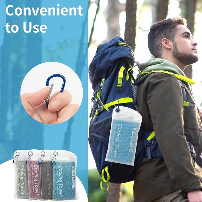 YESLIFE 4 Pack Cooling Towel 40"x12", Gym Towels for Men and Women, Soft Breathable Workout Towels for Yoga, Running, Sport, & More (Blue, Grey, Purple, Black)