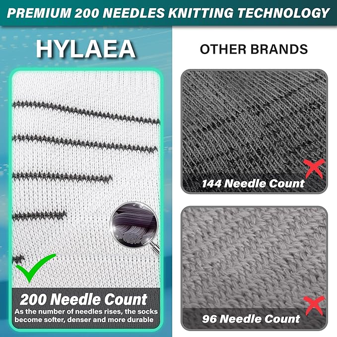 • Stylish Design ??Our sport socks offer a fashionable and functional accessory for any occasion, such as cycling, basketball, hiking, running, golf, and tennis. Plus, with 200-needle count technology, they?™re built to last, even with daily wear.