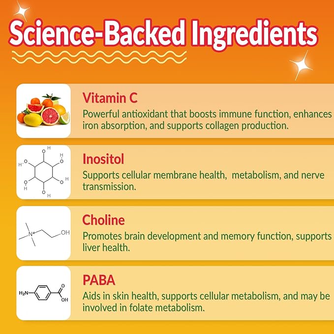 • ✨Smooth Energy, Calm Mind, Methylation & Healthy Immunity: Vitamin B helps convert food into cellular energy, maintain nervous system health & support the body’s ability to manage stre-ss, resulting in healthy energy levels & improved mood. Our formula includes Vitamin C to boost immunity, along with key co-nutrients Choline support methylation and thus the bioavailability of vitamin B nutrients. Inositol, and PABA to support energy metabolism and cellular function.