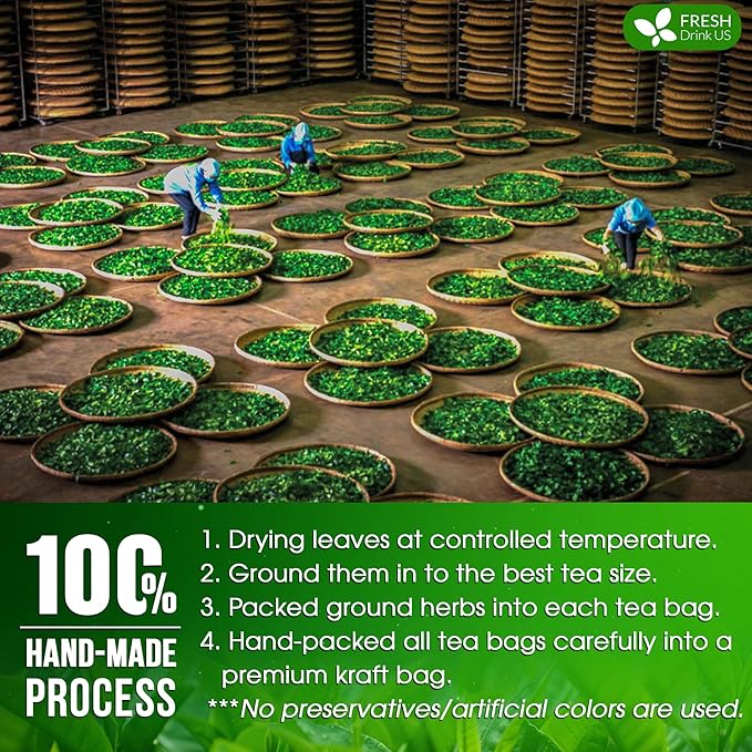 • ☘️ TULSI PEPPERMINT TEA BAGS MADE BY A HAND-MADE PROCESS: Tulsi Leaves and Peppermint are picked at their flavorful/colorful peak and naturally sun-dried and roasted to perfection. We hand-select only the premium herbs for the utmost quality. Then we grind them into the best tea size. Next, we immediately pack it in eco-friendly tea bags. Lastly, we pack the tea bags into food-grade kraft bags for ultimate freshness.