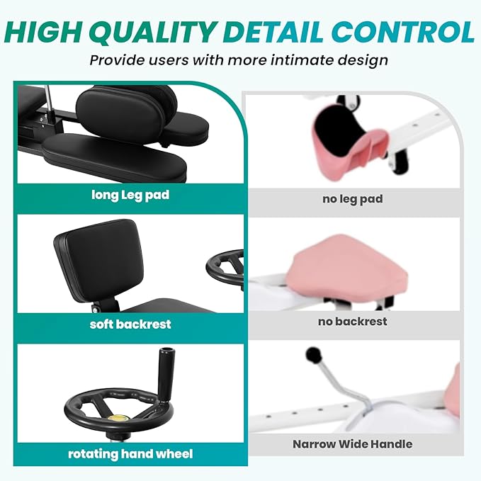 • 【Enhanced Comfort】: Ergonomically designed for maximum comfort during use, featuring padded cushions and adjustable settings to ensure a personalized and pain-free stretch. Sit in comfort, modify the extension arm using the wheel, and discover your ideal position for a profound and efficient stretch with the Leg Stretcher. This split machine is engineered to target your inner thighs, glutes, pelvic floor muscles, and lower back muscles, offering an effective full-body stretch.