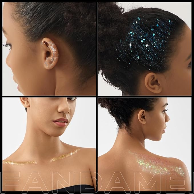 • Long-Lasting and Nice Makeup: FANDAMEI face glitter gel is glue-free, as well as quick-drying. After getting dry, it will stick to your skin within a whole day. It’s long-lasting, which can stay on well and be shiny almost anytime and anywhere. Using good quality pigments, the colors of the sequins are very vibrant and stand out from the crowd, bring you more dazzling makeup effect. If you want to remove the glitter gel, we recommend cleansing with a makeup remover.