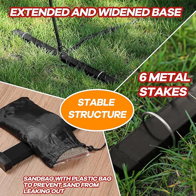• 𝐂𝐨𝐦𝐩𝐞𝐭𝐢𝐭𝐢𝐯𝐞𝐥𝐲 𝐒𝐭𝐚𝐛𝐥𝐞 𝐒𝐭𝐫𝐮𝐜𝐭𝐮𝐫𝐞: Empowered by spray powder coating process, the net structure is made of Anti-rust steel tube, with lengthened and thickened square tube. It can bear crazy strong wind. And equiped with 6 “J” shape ground stakes and 4 sandbags with closed plastic bag, the structure can be definitely stable for many kinds of training demands.