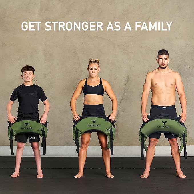 • [4 SIZES, 3-WORKOUT PROGRAMS INCLUDED] The Bulgarian sand weight bags are available in four distinct sizes: 17 LBS, 25 LBS, 33 LBS, 45 LBS, making sandbag workout weights suitable for all fitness levels. The weighted sand bags for workout are suitable for the whole family. With our Bulgarian bags of sand, black sand bags heavy duty outdoor includes an instructional manual with three workout programs: beginner, intermediate, and expert. You can choose the program that suits you & follow the reps.