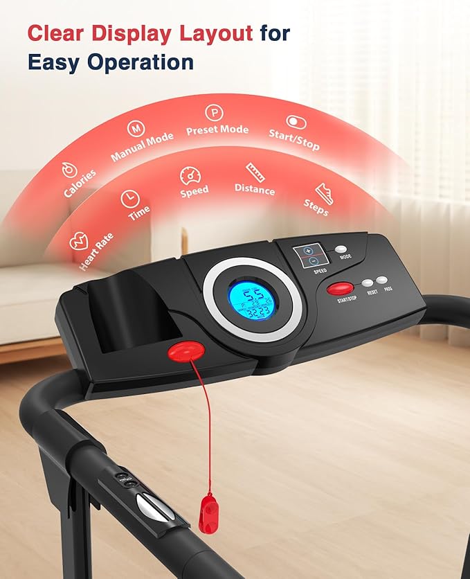 • 【Easy to Operate LED Display】- The Redliro treadmill for seniors features a multi-function LED display, allowing you to easily track time, speed, distance, and calories at a glance. With 12 preset programs and 3 control modes, it helps achieve diverse training goals. Additional features include a cup holder, mobile phone holder, magnetic safety key, and supportive handle bars, ensuring a convenient and enjoyable workout experience.