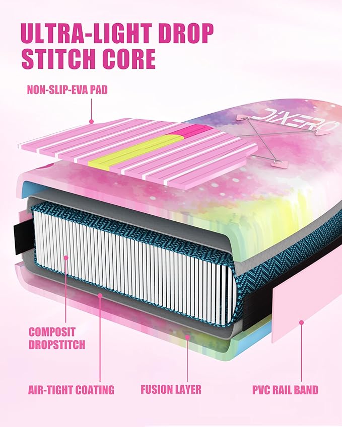 • 【𝗨𝗽 𝘁𝗼 350 𝗟𝗕𝗦 & 𝗠𝗼𝗿𝗲 𝗕𝗮𝗹𝗮𝗻𝗰𝗲 𝗕𝗼𝗮𝗿𝗱 𝘄𝗶𝘁𝗵 𝗘𝘅𝘁𝗿𝗮 𝗪𝗶𝗱𝗲 𝟯3", 𝟮 𝗥𝗶𝗱𝗲𝗿 𝗙𝗿𝗶𝗲𝗻𝗱𝗹𝘆】Dixero runeed series inflatable stand up paddle board for adults is 1 or 2 inches wider than other inflatable sup board, up to 350 lbs weight capacity make it more suitable for 2 person paddle board, so you can take your family or pets together. The extra-wide design balance fishing paddle board creates an incredible stable experience for all skill levels