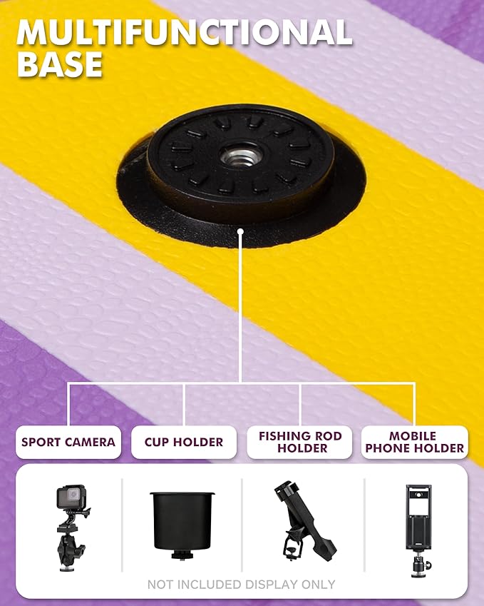 • 【Multifunctional base】The paddleboard multifunctional base can meet various needs. When you are traveling, you can install a cup holder so that you can replenish water anytime and anywhere without stopping, sitting down, opening your package, and so on. When you go out fishing, you can install a fishing rod bracket, place your fishing rod, or place your fish detector. When you want to record your wonderful moments of playing, you can install your sports camera or your phone holder, etc.