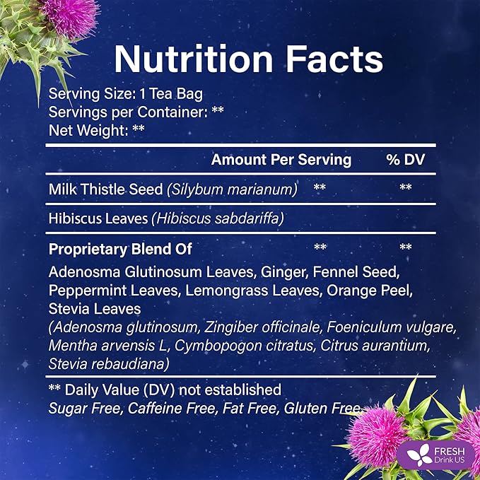 • ☘️ A VIBRANT BOTANICAL BLEND – An inspired mix of Milk Thistle Seed, Hibiscus, Adenosma Glutinosum, Ginger, Fennel, Peppermint, Lemongrass, Orange Peel, and Stevia Leaves—crafted for balance and harmony.