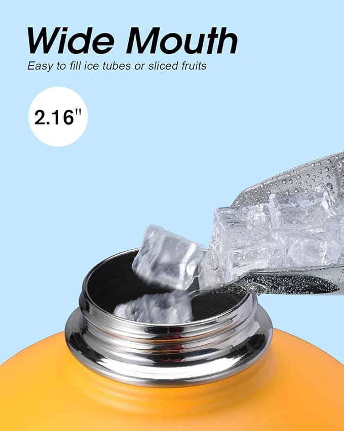 • Easy to Maintain: This stainless steel water flask is rustproof, sweat-proof, and BPA-free. Hand wash only and no abrasives. Do not put it in a freezer or microwave. Not for soft drinks. Be carefully of being scalded when handling hot liquids.