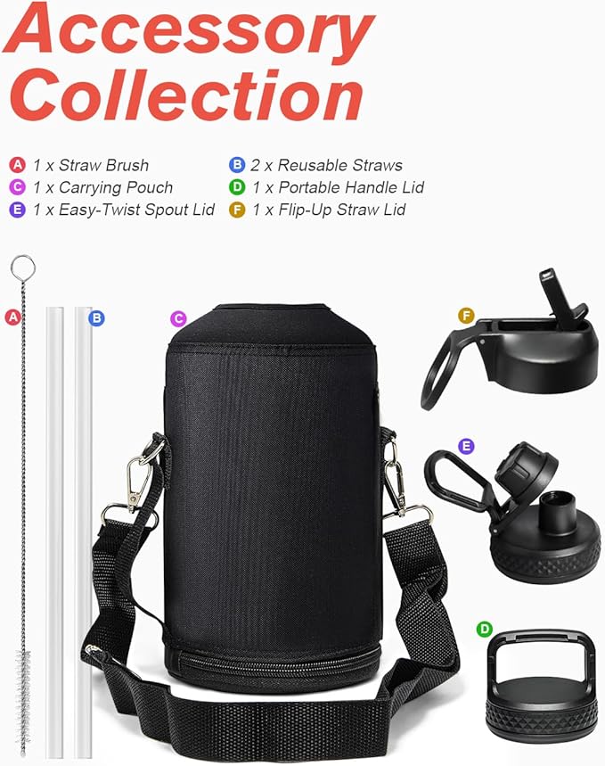 • Travel Longer: With 128 oz large capacity, the large water bottle allows you to enjoy your trip easier with fewer refills, perfect for hiking, camping and sport events. It's easy to stay hydrated and refreshed on exciting adventures with such a versatile bottle.