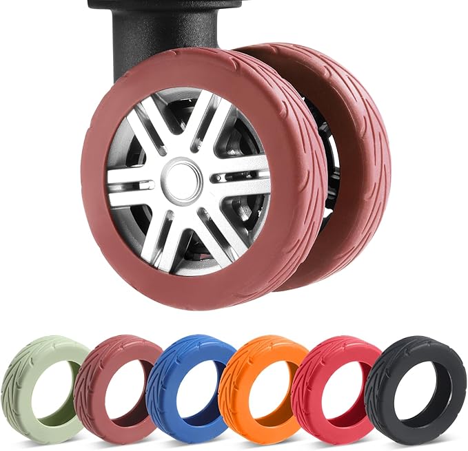• [The suitcase wheel protective cover is reusable, wear-resistant and silent] The protective cover has an arrow pattern design on the wheel surface, which is anti-slip and anti-wear. The high-quality silicone material is soft and elastic, which can greatly reduce the noise generated when pulling the suitcase, and can effectively protect your luggage wheels. don't worry luggage wheels replacement . Provide more A quieter, more comfortable travel experience. Can be washed for reuse after every trip