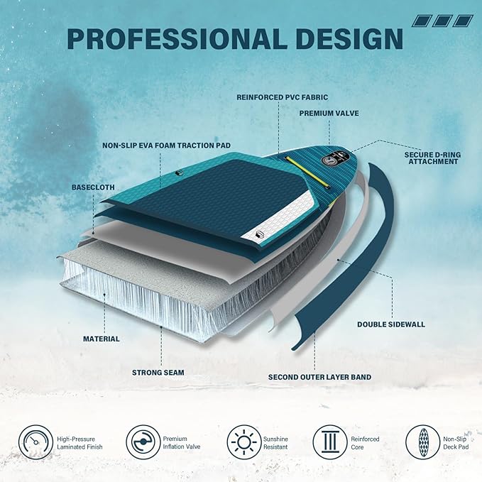 • Premium Accessory Package:Wave Rider/Dancer collection inflatable paddle board comes with high-quality accessories,including a comfortable kayak seat,waterproof phone bag, double-blade paddle,three detachable fins,convenient backpack, manual pump,cup holder, repair kit(no glue)and ankle safety leash. Everything you need for a fantastic paddling experience is included!