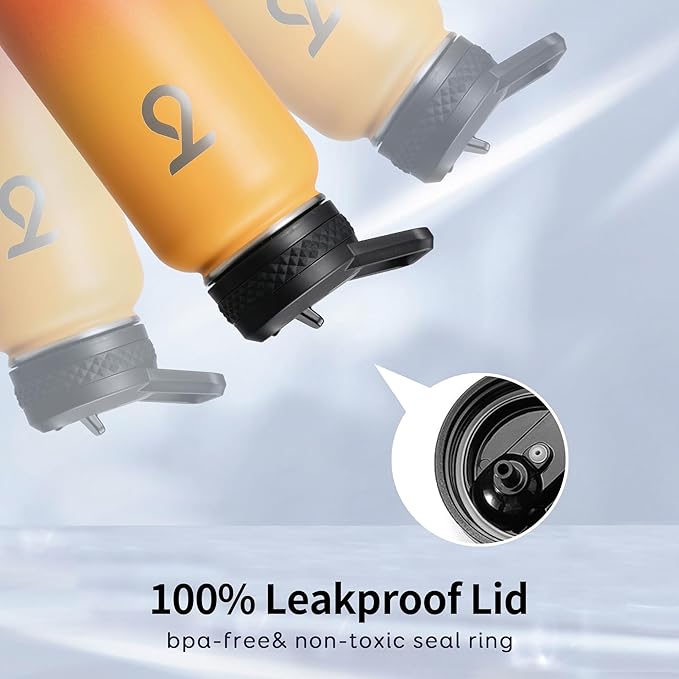 • Leakproof Triple Lids: Each lid comes with a rubber seal ring to ensure 100% leakproof. Sip through the flip-up straw lid, drink like a fish through the spout lid, or refill ice cubes through the wide mouth, you are in good hands with Trebo 32 oz water bottle.