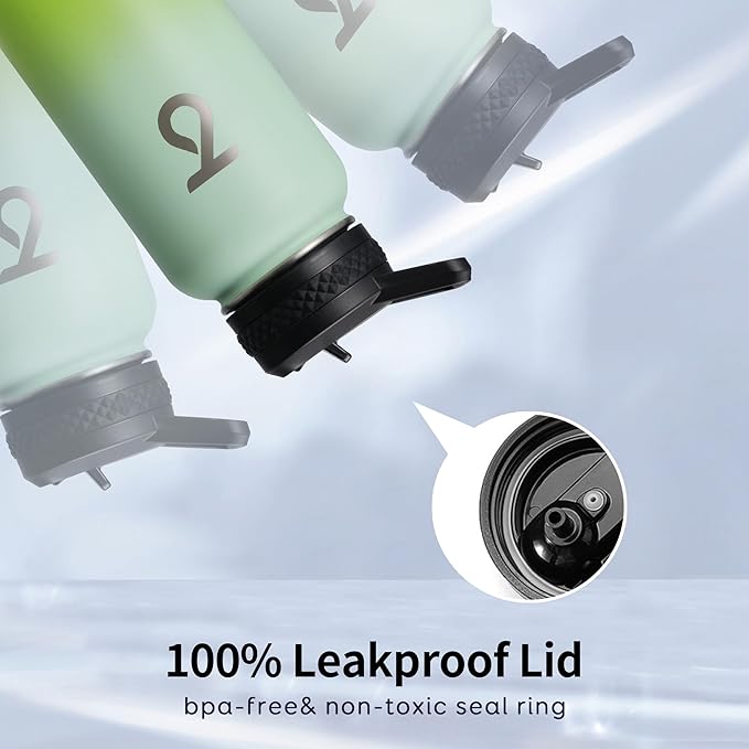 • Three Lids & Leakproof: Each lid comes with a rubber seal ring to ensure 100% leakproof. Sip through the flip-up straw lid, drink like a fish through the spout lid, or refill ice cubes through the wide mouth, you are in good hands with Trebo 40 oz water bottle.Wide mouth water bottle for easy to clean.
