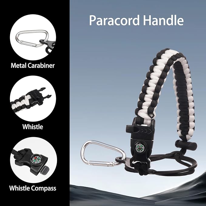 • Suitable for all occasions: This insulated water bottle comes with a beautiful hand-woven nylon paracord, and the paracord handle is equipped with a compass and carabiner and a whistle. It is a fully functional essential water bottle for camping, climbing, hiking, home use, travel, cycling, swimming fitness, and commuting