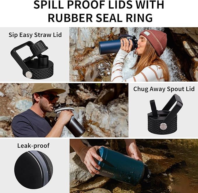 • What you get: We provide continuous after-sales service and 100% customer satisfaction to prevent any leakage or bonding failure. Your purchase includes: YONICOER water bottle, 3 lids, paracord handle, 1 brush, 2 straws, 1 straw brush, 1 cup sleeve