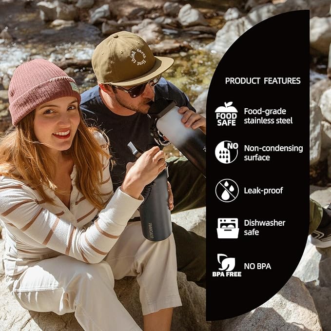 • High-quality materials: Made of food-grade 18/8 stainless steel, it is sturdy and durable and will not rust. The surface is coated with anti-slip powder, anti-oxidation, BPA-free and odorless. Its wide mouth opening allows you to fill ice and clean it easily and quickly. It is dishwasher-safe, making it a perfect water bottle for your daily drinking