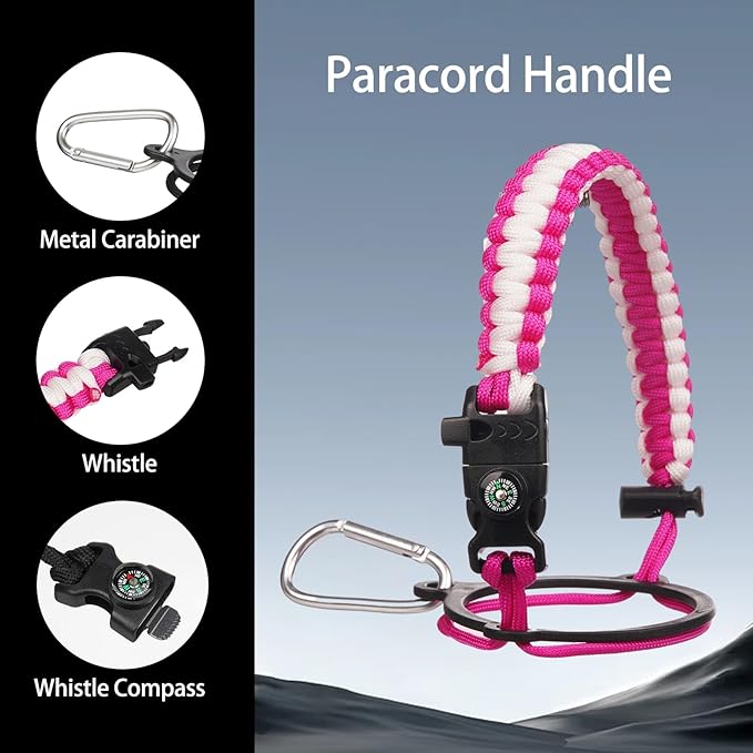 • Suitable for all occasions: This insulated water bottle comes with a beautiful hand-woven nylon paracord, and the paracord handle is equipped with a compass and carabiner and a whistle. It is a fully functional essential water bottle for camping, climbing, hiking, home use, travel, cycling, swimming fitness, and commuting