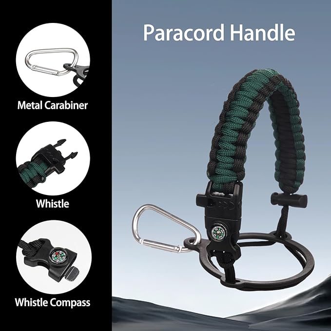 • Suitable for all occasions: This insulated water bottle comes with a beautiful hand-woven nylon paracord, and the paracord handle is equipped with a compass and carabiner and a whistle. It is a fully functional essential water bottle for camping, climbing, hiking, home use, travel, cycling, swimming fitness, and commuting