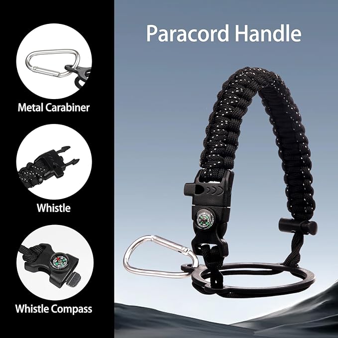 • Suitable for all occasions: This insulated water bottle comes with a beautiful hand-woven nylon paracord, and the paracord handle is equipped with a compass and carabiner and a whistle. It is a fully functional essential water bottle for camping, climbing, hiking, home use, travel, cycling, swimming fitness, and commuting