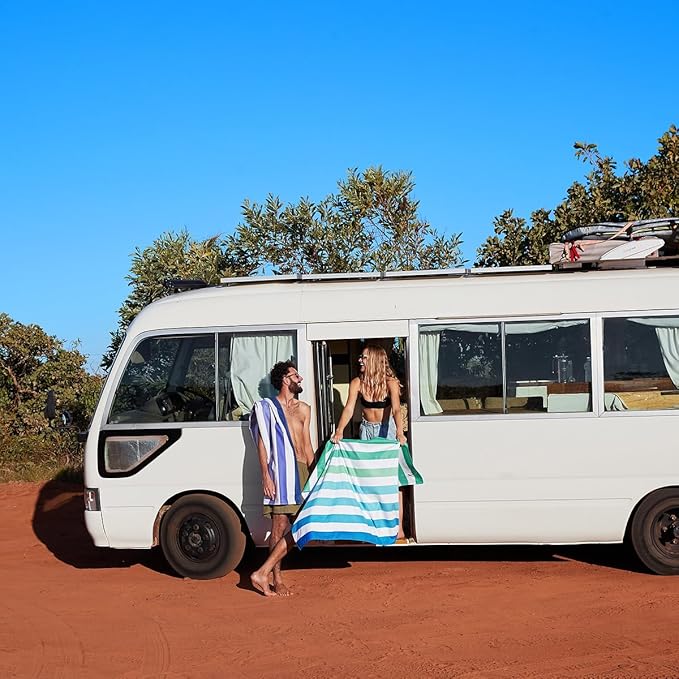 • QUICK DRYING & SUPER ABSORBENT - The fibres will soak up all water and moisture off of you in no time leaving you dry and ready to go. Our beach towel dries 3x faster than standard cotton towels and will keep free of unpleasant damp smells