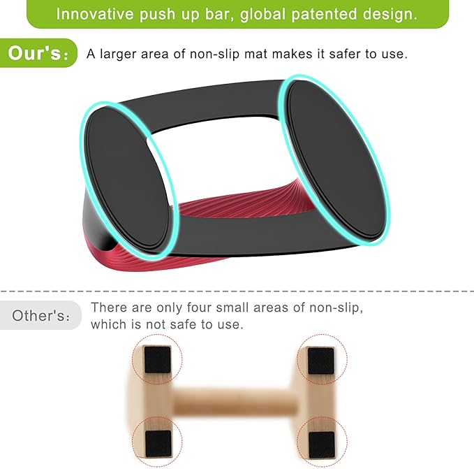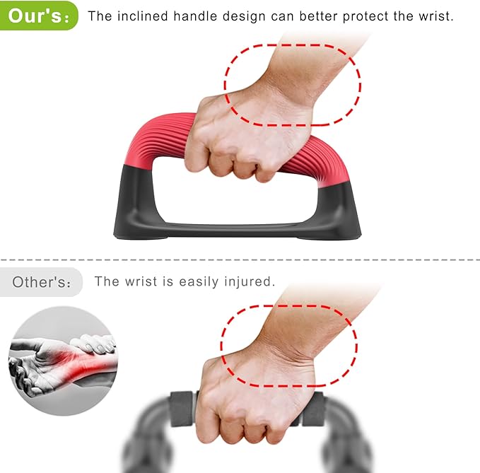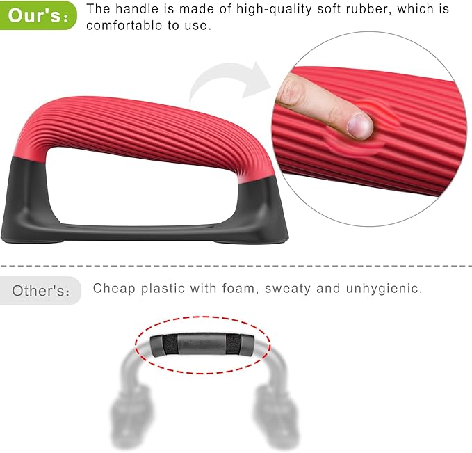 • 💯【Stable Non-Slip Base】The base of our push up bars is designed with anti-skid pads that increase friction and prevent sliding on any floor surface. You can focus on your form and technique without worrying about injuries or accidents