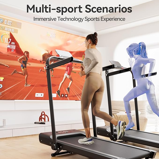 • Foldable Treadmill with Handle Bar : 3.0HP powerful but quiet treadmills for home, low noise <55db, 300lbs capacity 3 in 1 treadmill. We provide a large 37.4*15.35 inch area, and this under desk treadmill is designed with a 5-layer anti-skid running belt, which can enhance the safety of users during exercise