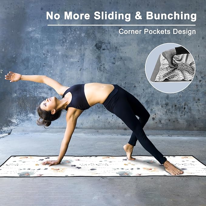 • Corner Pockets: Features 4 corner pockets on the backside, the non slip yoga mat towel helps secure and hold onto the mat firmly. Allows you to focus your mind, body and breath on the yoga practice, without worrying about bunching.