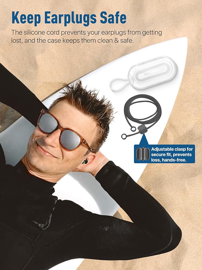 • Portable and Convenient: Swim Ear Plugs set come with a handy storage case, making it easy to keep your earplugs clean and organized. Lightweight and compact, they’re ideal for carrying to the pool, beach, or any water adventure, ensuring you’re always prepared