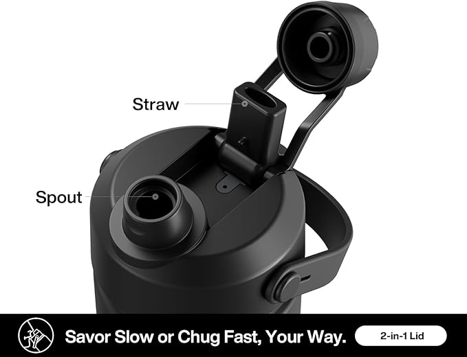 • 2-in-1 Leakproof Lid: Features a straw for easy sipping and a spout for effortless pouring or chugging; Toss it in your bag or car, offering no spills and endless thrills