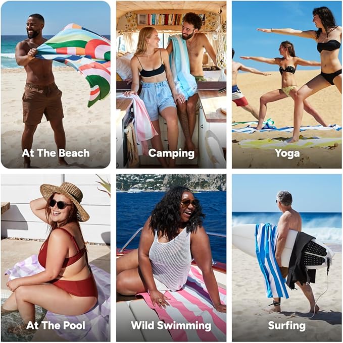• QUICK DRYING & SUPER ABSORBENT - The fibres will soak up all water and moisture off of you in no time leaving you dry and ready to go. Our beach towel dries 3x faster than standard cotton towels and will keep free of unpleasant damp smells
