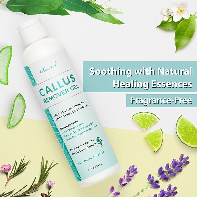 • Soothing & Calming Foot Care - infused with Tea Tree Oil, Eucalyptus Oil, Lavender Oil, and Green Tea, this feet callus remover gel helps calm and soothe irritated skin while supporting the skin's natural healing process. This heel big toe callus remover is good for all skin types and has a slight lavender and chemical scent. Regular use effectively prevents dry, cracked, and callused skin, restoring overall foot health and improving texture and appearance. This corn and callus remover for feet is ideal for runners, people on their feet all day, high heel wearers, and general foot upkeep