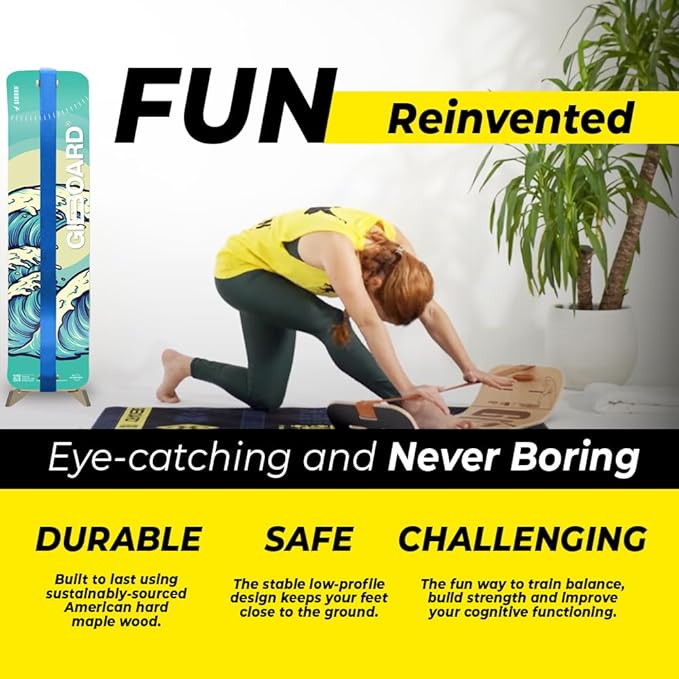 • SUSTAINABLY CRAFTED FOR LASTING QUALITY: The exercise board is meticulously crafted from sustainably harvested maple wood in the United States. Committed to minimal environmental impact, this adult and kids balance board offers unparalleled durability. The sleek, aesthetic design of the home fitness board and the included stand accessory enhances any space, providing a stylish yet enduring addition to your home exercise equipment.