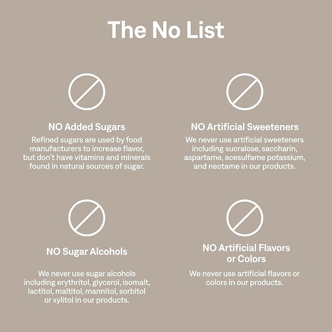 • Non-GMO Project Verified | Vegan | No Added Sugar | No Artificial Sweeteners | No Erythritol or Sugar Alcohols | Certified Gluten Free | Paleo | Certified Kosher | Caffeine Free