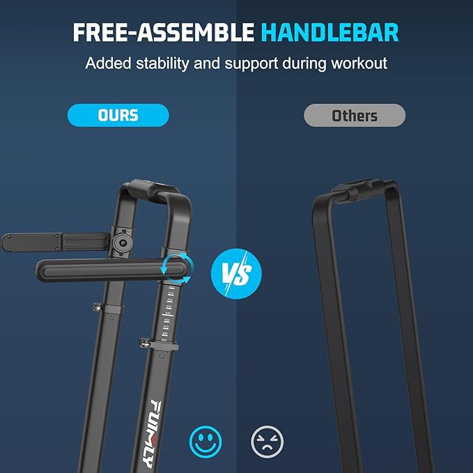 • FOLDABLE TREADMILL WITH ADJUSTABLE HANDRAIL :NEW innovative Funmily treadmill features adjustable handrails that provide personalized support during your workouts. Simply extend the handrails for added stability or fold them away to enjoy the freedom of arm movement while running. Its sleek, foldable design makes storage a breeze, making it perfect for home gyms, apartment, small spaces