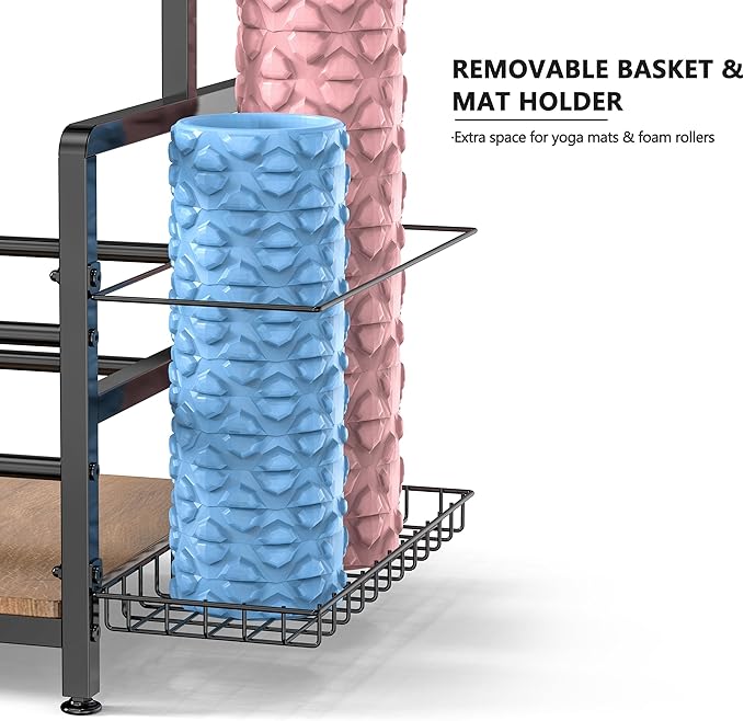 • All‑in‑One Gym Storage Rack – Holds 8 hex dumbbells, 3 kettlebells, 2 medicine balls, an ab wheel, yoga strap, mats, rollers and bands in one 24" rack—no more toe‑stubbing piles, just grab and go.
