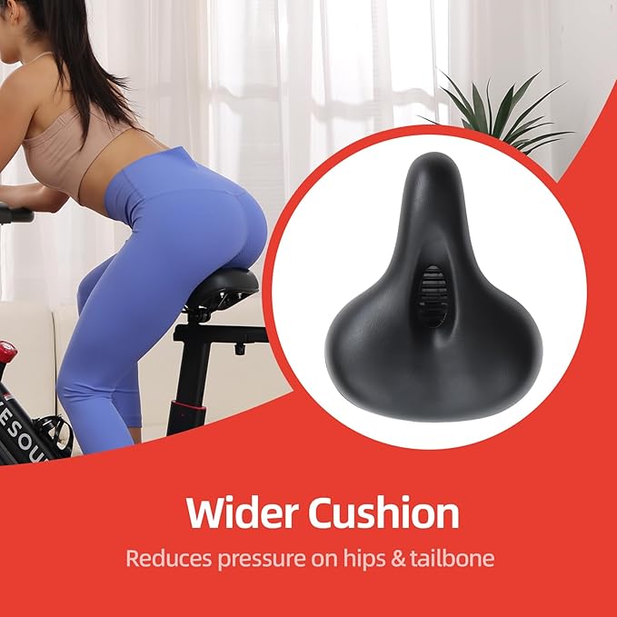 • Stable Structure with adjustable handlebar and seat: The stationary bike for home features a 2-way adjustable handlebar and 4-way adjustable bike seat. Its durable stainless steel dual-triangle frame ensures stability and supports up to 300 pounds. Equipped with a wider seat, offering a secure and comfortable ride for all kinds of users,which fits all families fitness.