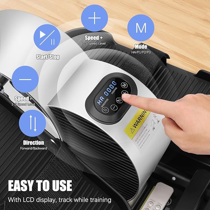 • 【Versatile and User-Friendly】ANCHEER ellipse leg exerciser offers multiple workout modes while sitting. In HA mode, you can manually adjust the direction (forward and reverse) and speed (1-5 levels) using the remote control. The P1/P2/P3 modes come with pre-set programs, that automatically adjust the running speed and direction. Please do not stand on the foot pedal exercise machine.