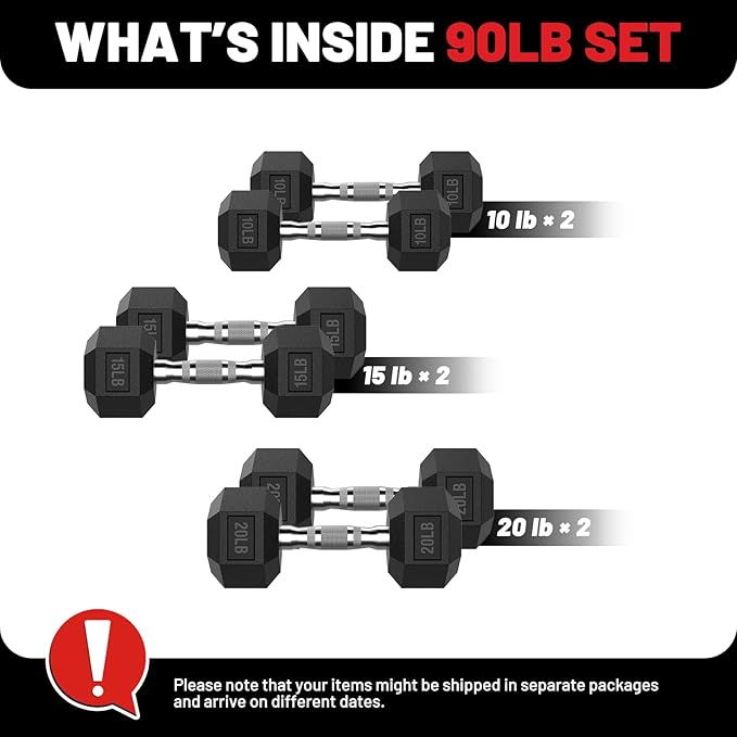 PAPABABE Hex Dumbbell Set 45-550 lb, Rubber Encased Home Gym Dumbbells, Weights Dumbbells for Women & Men, Hand Weight for Strength Training