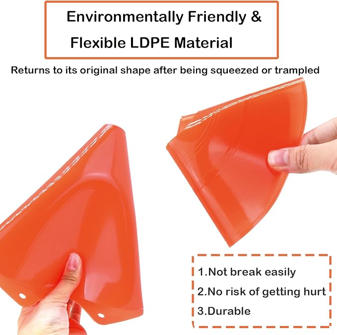 • FLEXIBLE MATERIAL: The cones for sports are made of strong and flexible PP material,all the small cones for sports can retract into their original shapes even if they get trampled on or squeezed