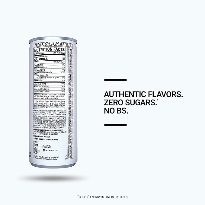 • Total Transparency: All GHOST products feature a transparent label that fully discloses the dose of each active ingredient. Zero proprietary blends means you know what you’re getting in each and every sip. GHOST Energy is vegan friendly, gluten free, and contains zero sugars.* *GHOST Energy is low in calories.