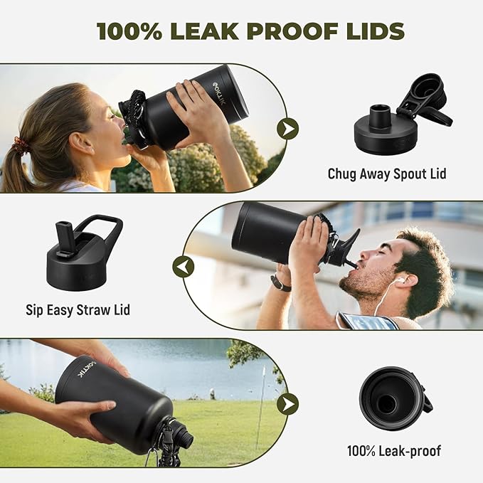 • Leak-Proof Insulated Water Bottle: Equipped with two fully leak-proof lids, this water bottle is designed for convenience and versatility. The spout lid allows for easy drinking and seals tightly to prevent spills, while the straw lid offers spill-proof sips. The package includes an extra straw and a straw brush for effortless cleaning. Perfect for sports, fitness, travel, or daily use