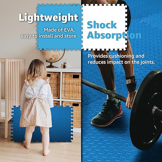 Art3d 48 Sq.Ft Eva Puzzle Exercise Mats, 24"x24" x 1/2" Thick Foam Interlocking Tiles for Flooring, Workout, Gym Equipments, Pack of 12, Blue