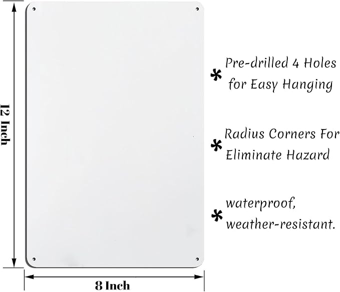 • 【Easy to Install】The tin sign comes with 4 pre-drilled holes, making installation quick and hassle-free. Whether you choose to hang it with a rope or secure it with nails, no complicated tools or steps are required.