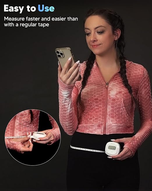 • Track Every Inch with Ease: Arboleaf smart tape features precise 0.01in/0.1cm increments, a bright digital display, and a retractable easy-lock design for solo measuring; Switch between in/cm with one button and measure up to 60in/150cm with accuracy