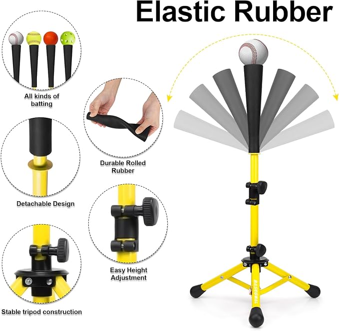 • 3.【DURABLE-HIGH QUALITY WRAPPED RUBBER】Youth Hitting Tee,Every BaseGoal Tee top is hand rolled,Strong and durable,Which is suitable for kinds of balls, with good elasticity, like baseball, softball, training ball and to have the real hitting feelings with special size design.