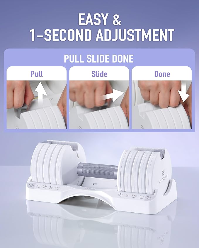 • INNOVATIVE PATENTED DESIGN: Engineered with a customer-first approach, BYZOOM FITNESS adjustable dumbbells feature an internationally patented mechanism, making weight selection effortless. Designed to simplify strength training, this system ensures a smooth and user-friendly experience for all fitness levels.